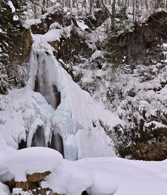 氷瀑七滝ツアーは、冬に完全に凍る落差30メートルの滝を間近で見られる年に一度のチャンスです。