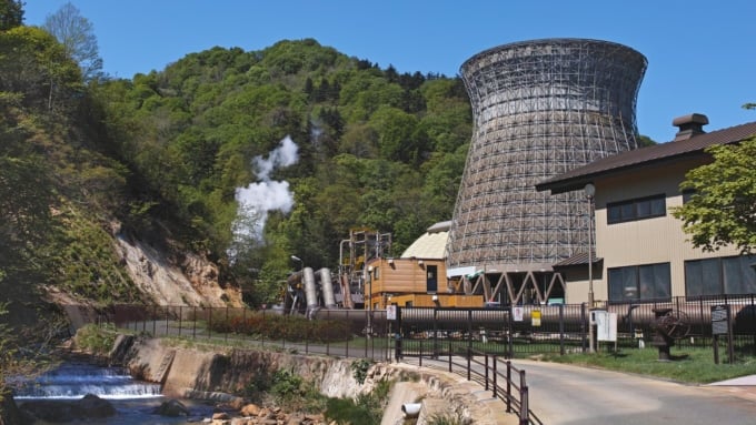 松川地熱発電所は、岩手山と八幡平の火山の間に戦略的に位置し、日本初の地熱発電所として1966年に運転を開始しました。その象徴的な構造は、丼をひっくり返したような形をした高さ 45 メートルの冷却塔で、発電機に電力を供給した後に蒸気が冷却されます。