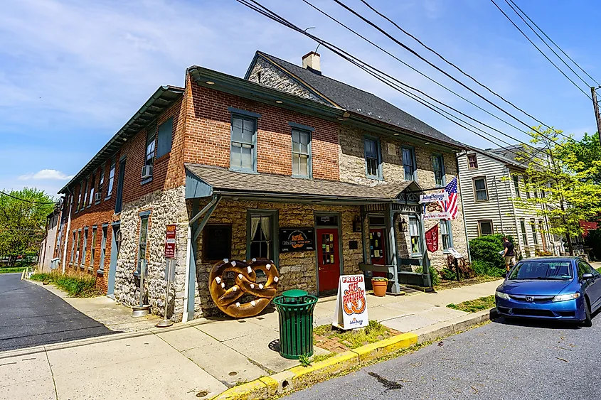 ペンシルバニア州リティッツにあるジュリアス・スタージス・プレッツェル・ベーカリーの外観。ジョージ・シェルドン/Shutterstock.com。