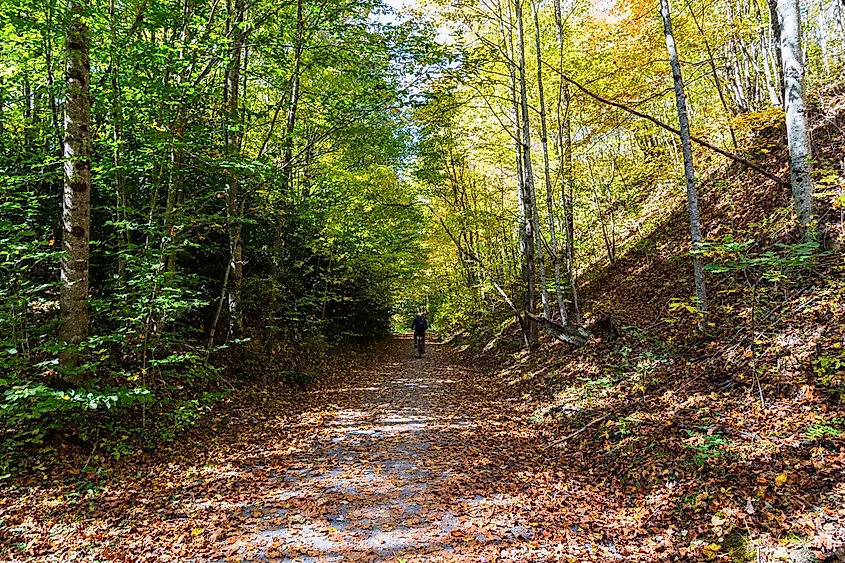 屋外のサイド クエストに興味がある場合は、アビングドンから始まり、ノースカロライナ州の州境まで 30 マイル以上続く壮大な鉄道トレイル、バージニア クリーパー トレイルをお勧めします。メインストリートのすぐそばに登山口があるアビンドンは、人気の出発点です。