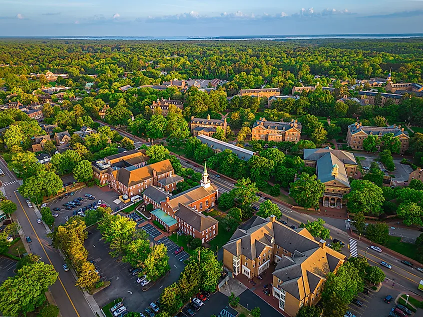 バージニア州ウィリアムズバーグの空撮。