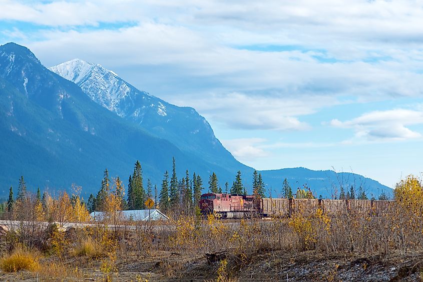 ブリティッシュコロンビア州ゴールデンを通過する列車。