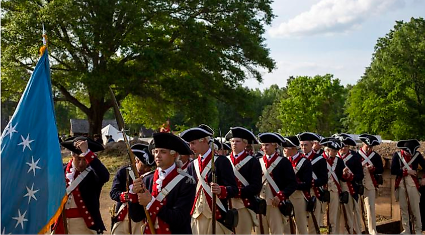 カムデンでの独立戦争の再現。ブレザー博士著 – 自身の作品、CC BY-SA 4.0、ウィキメディア・コモンズ。