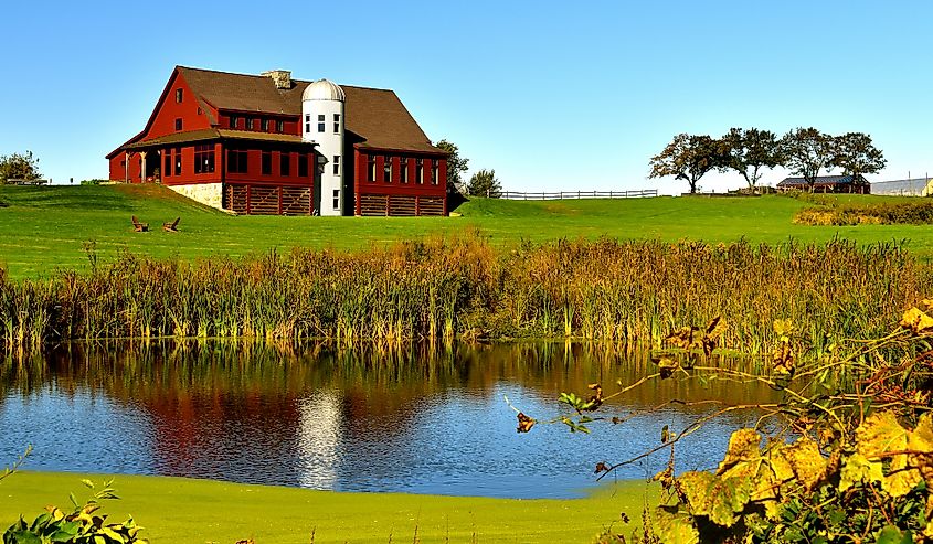 マサチューセッツ州グロトンのかなり赤い納屋。