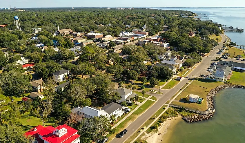 ノースカロライナ州のウォーターフロントのサウスポートを見下ろしています。