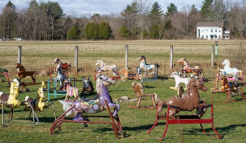 ほとんどの人はストーンヘンジについて聞いたことはありますが、ポニーヘンジについて聞いたことがある人はほとんどいません。ボストン郊外のリンカーンにあるオールド・サドベリー・ロードにある、ペイントされた金属とプラスチックのポニーの遊び心のあるコレクションは、一頭の趣味の馬から始まり、ポニーの群れが成長するきっかけになったと噂されています。地主たちはその風変わりな光景に異論はなく、不思議な光景が現れるたびに新たな追加物を歓迎します。