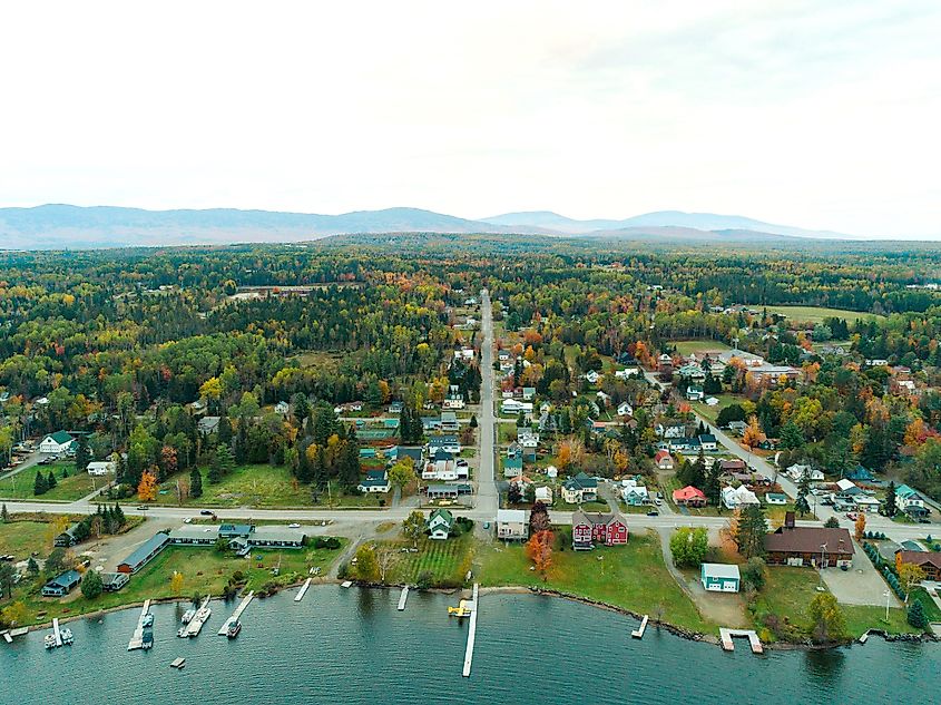 メイン州レンジリーの空撮。