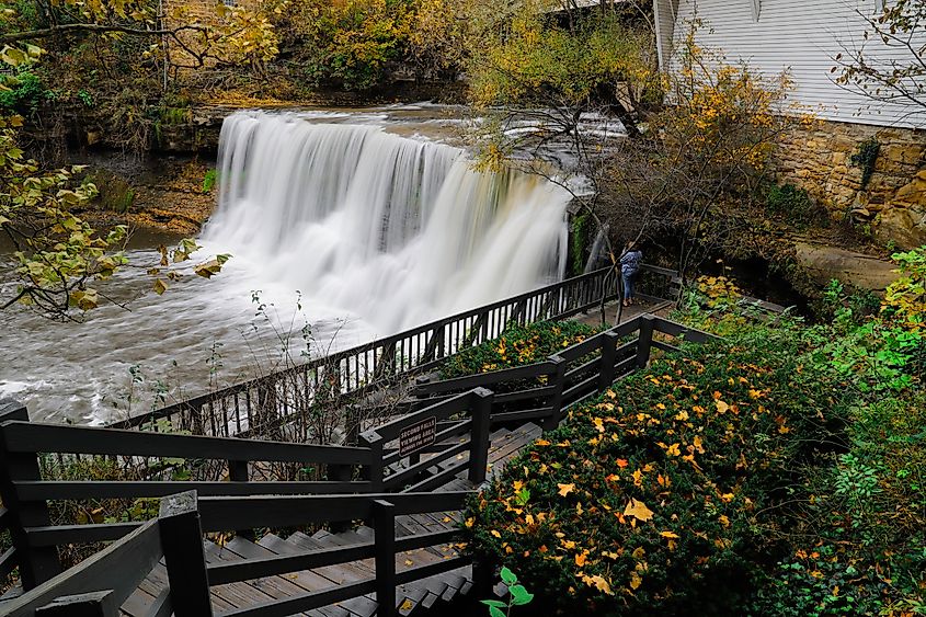 まさにその名にふさわしいこの町には、滝を中心としたダウンタウンがあります。まず目に入るのは、中央にある主要な観光名所、チャグリン フォールズの滝です。ただし、チャグリン フォールズ トライアングル パークとその豪華な歴史地区に行く前に、まずミルポンドに向かうのが最善です。