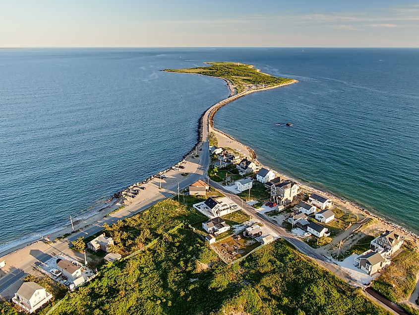 マサチューセッツ州ウェストポートにあるグースベリー島の空撮。