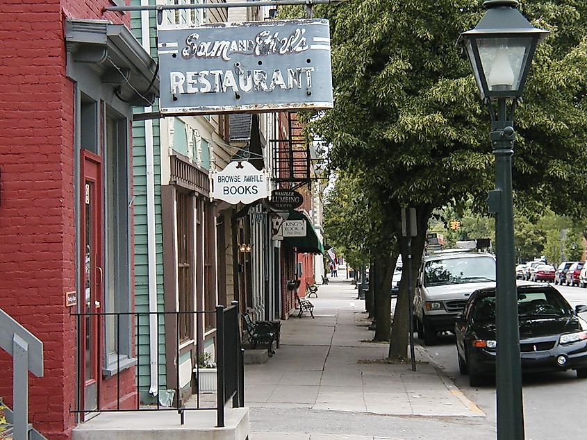 広場から 1 ブロック離れたキャッスル ノエルには、ニューヨークの老舗デパートのウィンドウいっぱいに展示されたものなど、ホリデー映画の小道具の米国最大のコレクションが収蔵されています。サウス コートに面したクール ビーンズ カフェは、特に窓が曇る冬には、午前 8 時までに高校生や早期退職者でいっぱいになります。通りの向かい側にあるミス モリーズ ティー ルームは、プレストキの天井とルーズリーフ ブレンドのガラスキャビネットを備えた薬局を改装したものです。