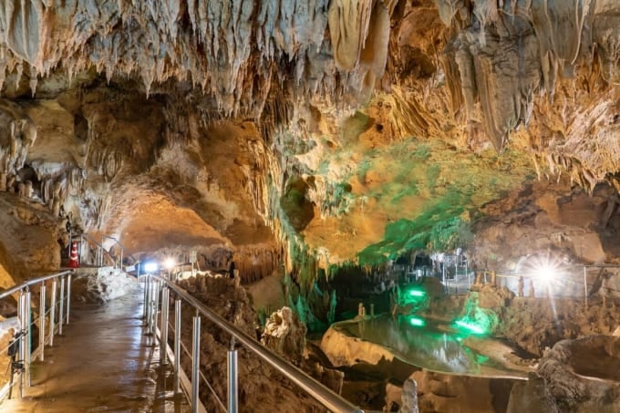 訪問者は、洞窟の合計3,200メートルの長さの約660メートルを探索できます。内部では、洞窟が照らされており、無数の神秘的な乳石を強調しています。私の隣人トトロのキャラクターに似ているため、トトロstalactiteと呼ばれるユニークな岩層は、注目すべき楽しい機能です。