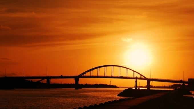 空と海はオレンジ色の色合いで描かれているので、オガンザキの夕日は非常に素晴らしいです。