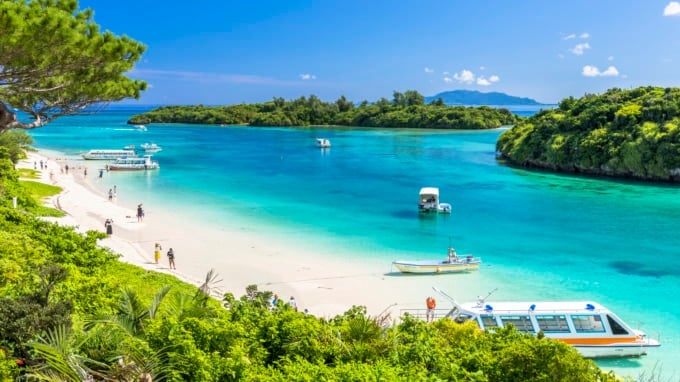 石川島の北西部に位置するカビラ湾は、ミシュラングリーンガイドの日本で3つ星を獲得した沖縄で最も象徴的な風光明媚なスポットの1つです。その高い明快さで知られる海は、青からエメラルドグリーンにシフトする素晴らしいグラデーションを示しています。この魅惑的な色の変化は、天気と潮によって異なるため、滞在中に数回訪れる価値があります。