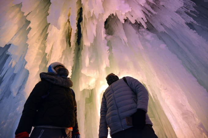 秋田県横手の「かまくら雪まつり」は、この種のものとしては最大規模で、見事な冬の光景が見られます。この祭りには、「かまくら」というスノードームが登場します。ライトが 1 つ付いた小さな構造から、数人が入れるのに十分な大きさのものまであります。魅惑的な雰囲気で知られるこの祭りは、日本独特の冬の伝統を美しく紹介します。