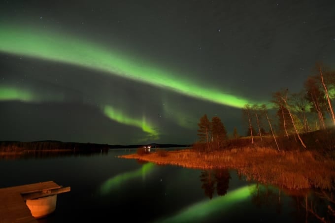フィンランドの極北に位置するイナリ村は、イナリ湖に反射するオーロラで有名です。人口が少ないため光害が少なく、オーロラ鑑賞に最適な環境が整っています。