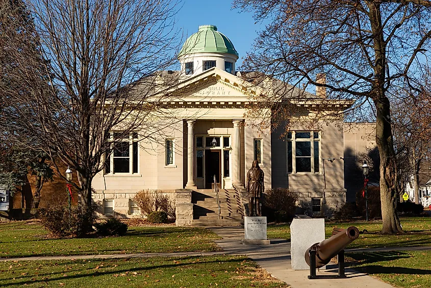 イリノイ州メンドータのダウンタウンにある歴史的なヒューム・カーネギー図書館の外観。 (画像クレジット:Eddie J. Rodriquez、Shutterstock経由)