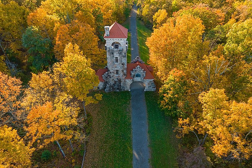 ニューヨーク州ニューパルツの秋の紅葉。