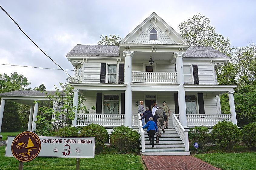 第 54 代メリーランド州知事の旧邸宅は、現在クリスフィールド ヘリテージ財団が所有する博物館となっています。画像クレジット:Linda Harms、Shutterstock経由