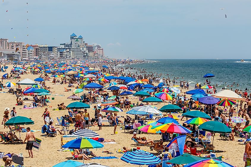 メリーランド州オーシャンシティにある混雑したビーチ。