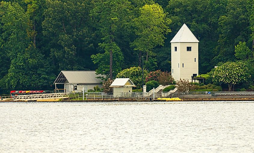 ノースカロライナ州モリスビル:写真は、ライククラブツリーカウンティパークにあるボートの打ち上げドックを示しています。編集クレジット:Shutterstock経由のWileydoc。