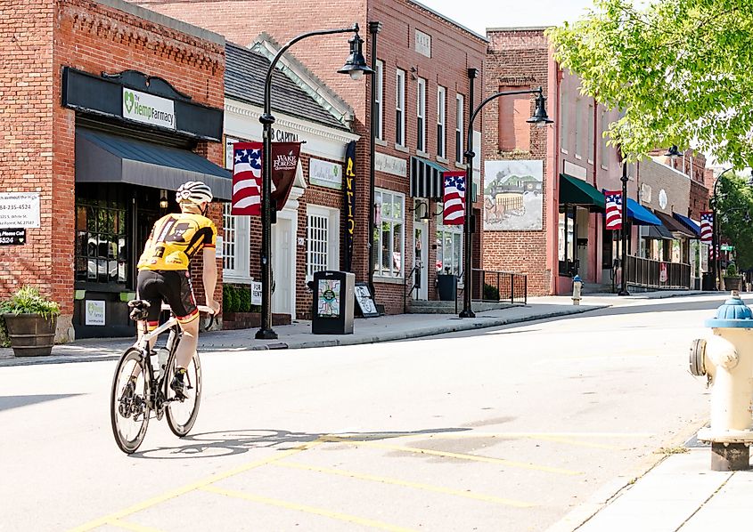 ノースカロライナ州ウェイクフォレストの歴史的なダウンタウンにあるホワイトストリート。