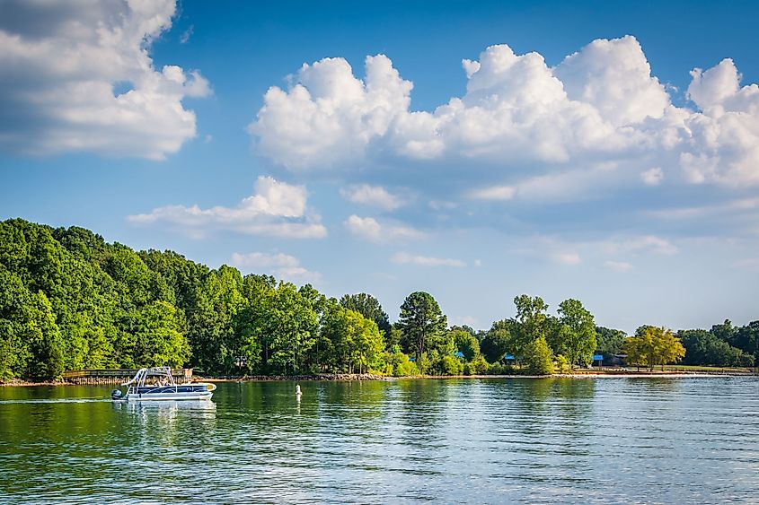 ノースカロライナ州コーネリアスのジェットンパークから見られたノーマン湖のボート。