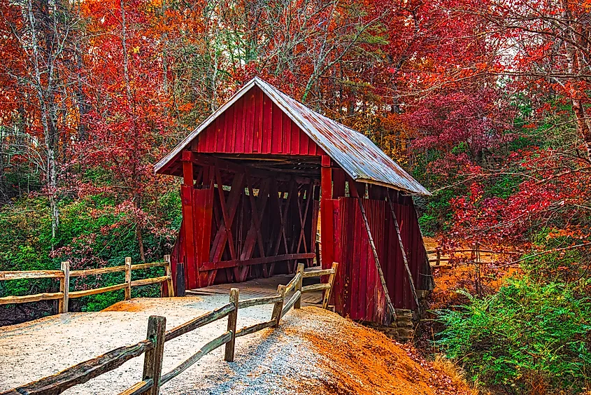 サウスカロライナ州グリーンビル近くのランドラムにある歴史的なキャンベルズ カバード ブリッジ。