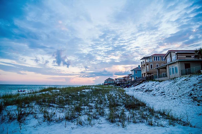 フロリダ州ガルフ ブリーズのビーチと家の眺め。