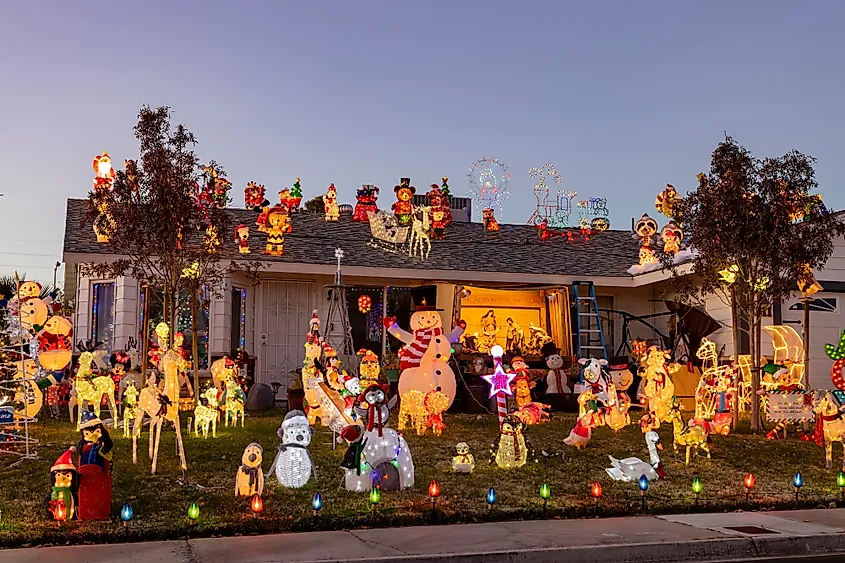 ネバダ州ボルダーシティの家の前にある美しいクリスマスの装飾。編集クレジット: Kit Leong / Shutterstock.com。