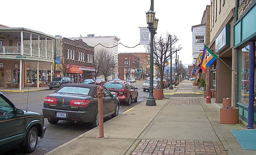 オハイオ州ローガンのダウンタウンにあるウエスト メイン ストリート。画像クレジット:ティム・カイザー、ウィキメディア・コモンズ経由