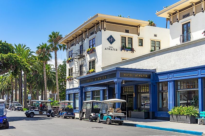 カリフォルニア州アバロンにあるホテル アトウォーターの建物のストリート ビュー、フェリペ サンチェス / Shutterstock.com 経由