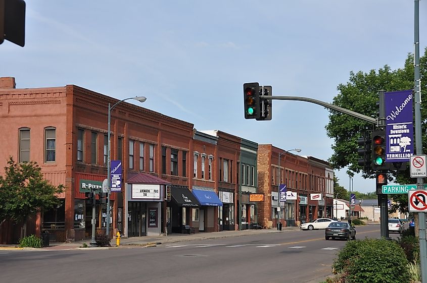 サウスダコタ州バーミリオンのダウンタウンにある歴史地区。画像クレジット: Magicpiano (ウィキメディア コモンズ経由)。