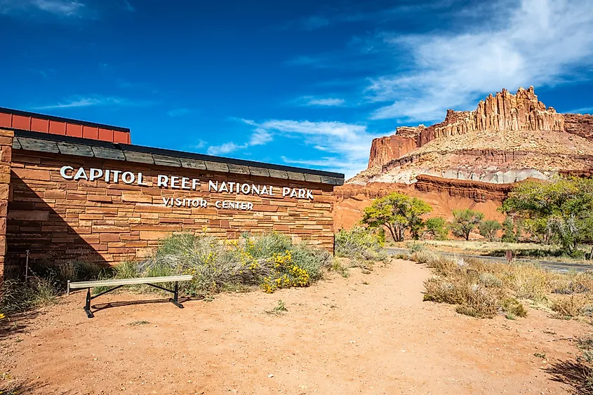 ユタ州トーリーにあるキャピトル リーフ国立公園の標識。編集クレジット: Michael Gordon / Shutterstock.com