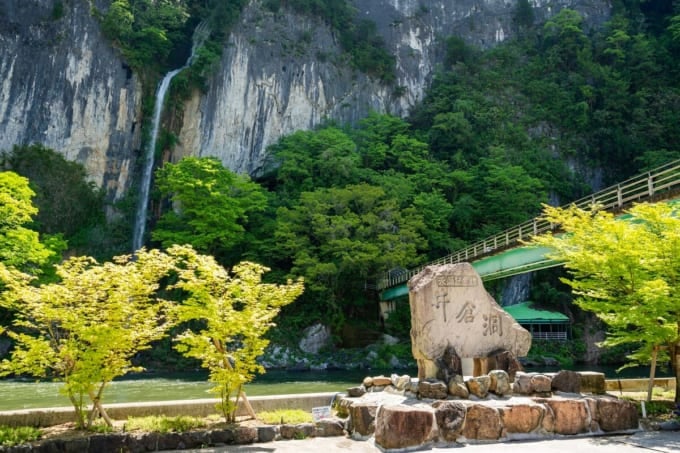 伊倉川渓谷の大自然の中に位置する、全長1,200メートルの鍾乳洞。洞窟の壮大な彫刻美を堪能できます。入り口は切り立った崖にあり、近くから高梁川に滝が流れ落ち、息をのむような景観を作り出しています。夏でも洞窟内は15~16℃程度と涼しいです。