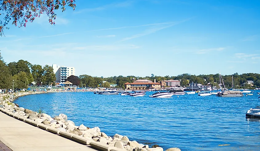 34 マイルのショア パスでは、訪問者が湖畔に沿ってこれらの邸宅を通り抜けることができ、州内で最もユニークなウォーキング ルートの 1 つを提供し、澄んだ海の素晴らしい景色を眺めることができます。ボート遊び、水泳、夏祭り、活気あるダウンタウンでのショッピングが訪問の締めくくりです。冬には、氷の城や近くのスキー場が一年中賑わいます。