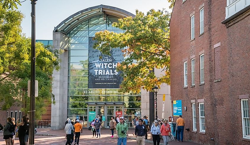 毎年恒例のホーンテッド・ハプニングズ・イベントの開催中、人々はピーボディ・エセックス博物館の前を通り過ぎます。画像クレジット:Heidi Besen(Shutterstock経由)