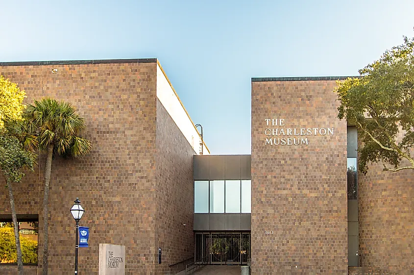 チャールストン博物館の入り口の看板。編集クレジット: ehrlif / Shutterstock.com