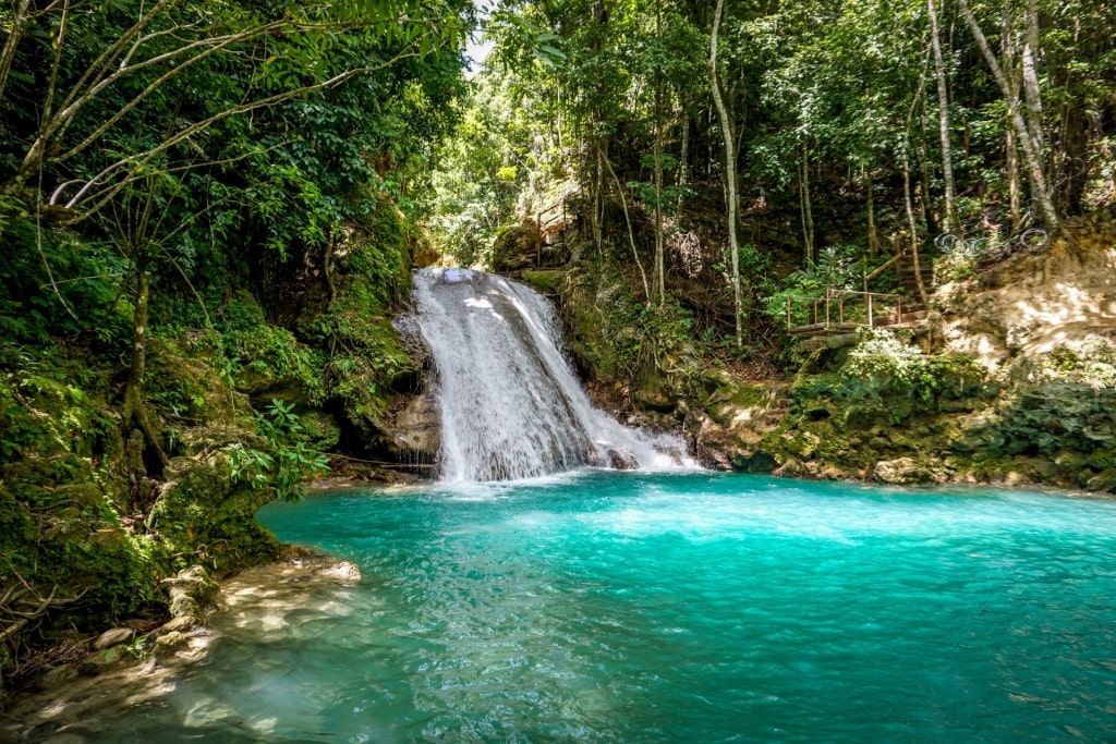 リゾート地オーチョ リオスからわずかの距離にあるこの滝は、暑い日に涼むのに最適な場所です。滝そのものに登ることもできますが、もっと賢明なことに、滝の横にある階段を登ることもできます。