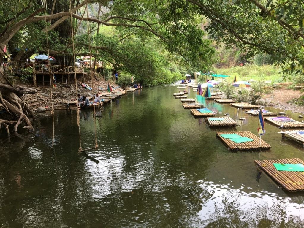 竹製の「カリプソ」いかだは、川の流れを見るもう 1 つの方法です。ガイドの案内で、うっそうとした葉の下を歩きながら、川の動植物や歴史について学びましょう。