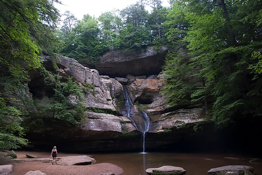 オハイオ州ホッキングヒルズ州立公園のシーダーフォールズからのゆっくりとした水。画像クレジット:Larry Yung / Shutterstock.com