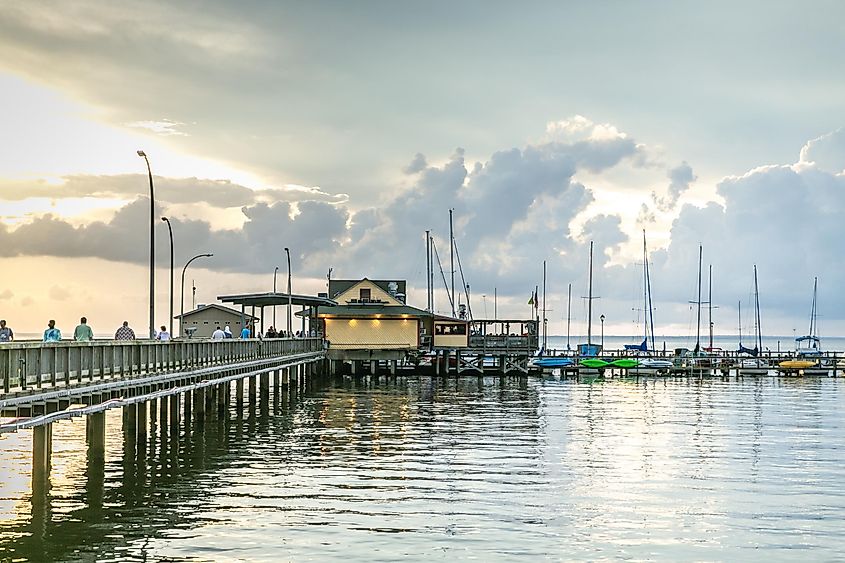 アラバマ州フェアホープの夕暮れ時の桟橋の建物