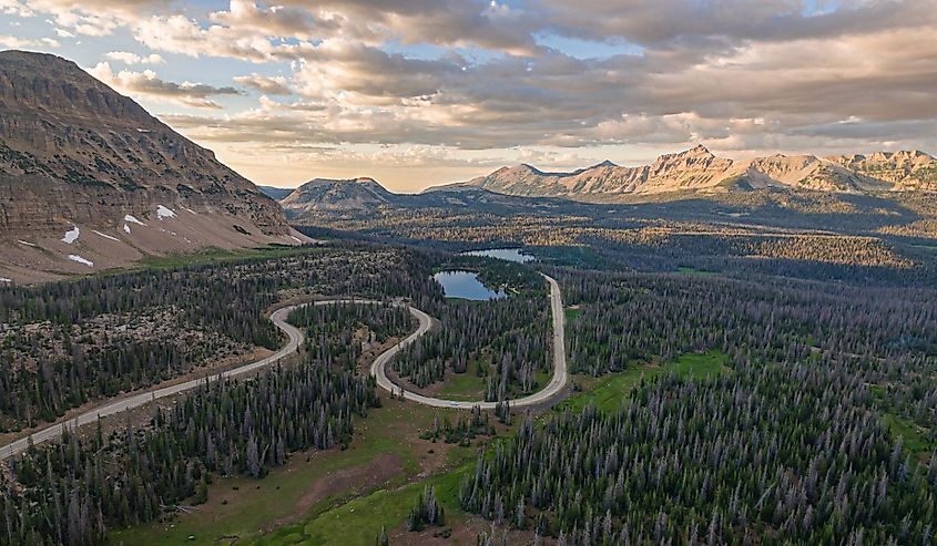 ユタ州北部のウインタ山脈にあるミラーレイクハイウェイの美しい曲がりくねった道。