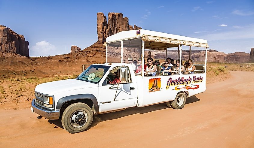 人々はモニュメントバレーの風光明媚な尻を通り抜けることを楽しんでいます。 ShutterStock経由の画像クレジットTravelView
