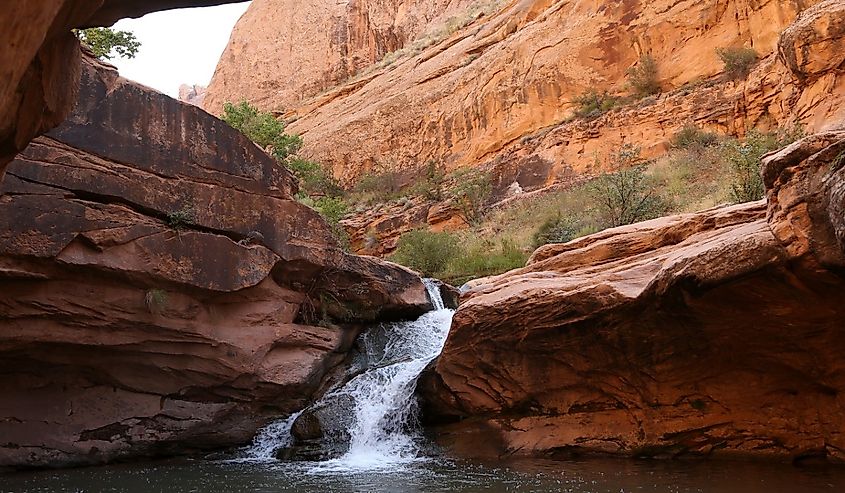 ユタ州モアブ近くのミルクリークにある滝とプール。