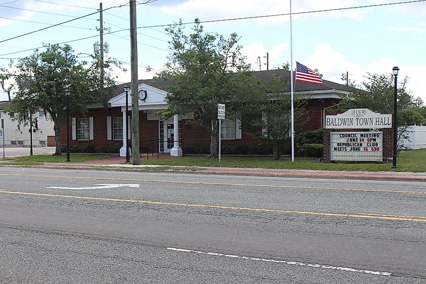 フロリダ州ボールドウィンの市庁舎、マイケル・リベラ著 – 自身の作品、CC BY-SA 4.0、ウィキメディア・コモンズ