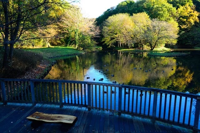滑り台やジャングルジムなどの遊具もあり、お子様連れのファミリーにもおすすめです。大きな池では鴨や鯉を眺めながらゆったりとした時間をお過ごしいただけます。