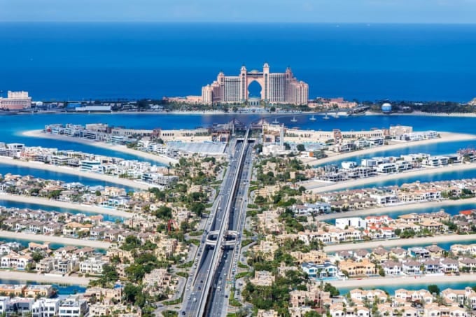 パーム ジュメイラは、ヤシの木のような形をした世界最大の人工島です。高級ホテル、レジャー施設、ビーチフロントのプライベートレジデンスがあり、ドバイで最も象徴的なランドマークの 1 つとなっています。