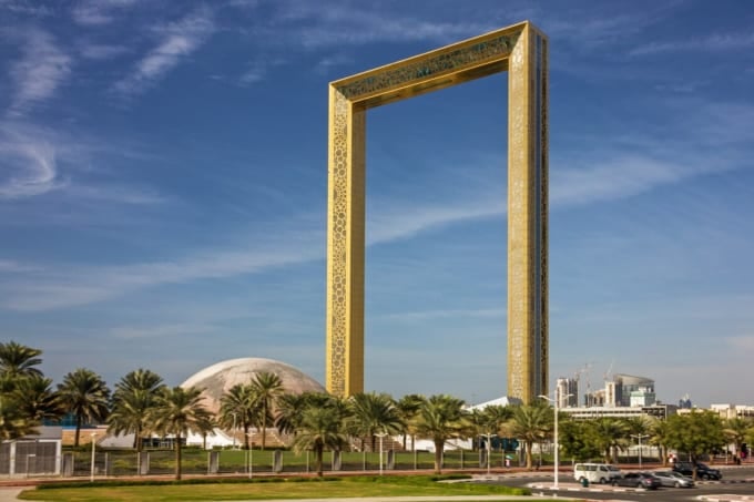 2018 年に完成したドバイ フレームは、巨大な額縁のようにデザインされた注目の超高層ビルです。世界最大の額縁状の建物としてギネス世界記録に認定されています。