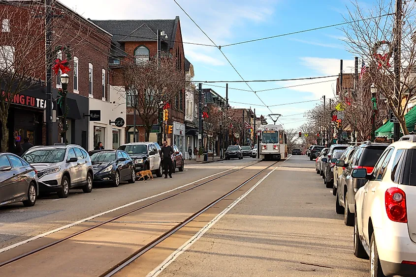 アメリカ初のフェアトレード タウン (2006 年) としてメディアに注目され、ステート ストリートの SEPTA ルート 101 のトロリーや、何世代にもわたって建設された商店街と調和する市民のアイデンティティが注目されています。トロリーは、多くの人がメディアのメインストリートと考えている通りの中心を音を立てて通り抜け、カフェ、ショップ、そして市民のエネルギーをコンパクトな通りに織り込んでいます。