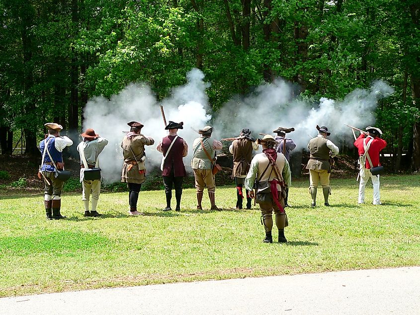 サウスカロライナ州マスグローブ・ミル州立史跡の再現者たち。